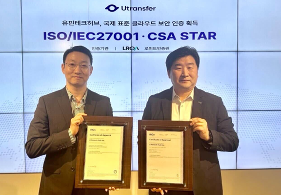 이번 인증 취득은 유트랜스퍼를 서비스하는 유핀테크허브가 국제 표준에 부합한 정보보안 관리체계를 운영하고 있음을 객관적으로 검증하고, 고객에게 보다 안전한 서비스를 제공할 수 있는 기회가 되었다는 점에서 의미가 큽니다.
